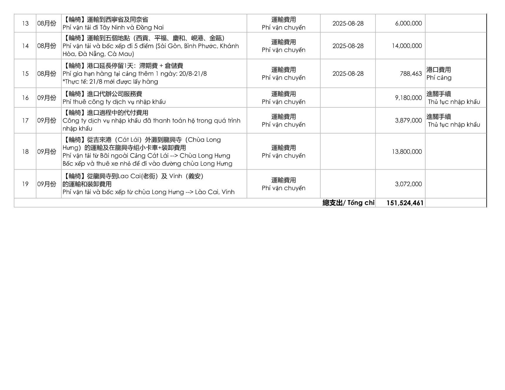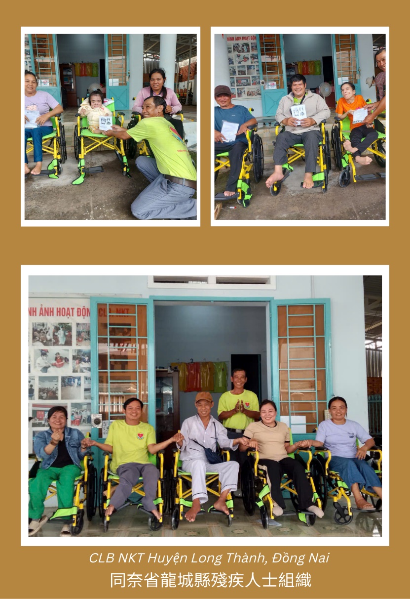 這批輪椅自南京海運啟程,途中因颱風及進口手續遇到諸多困難,一度延誤。幸而在過程中得到貴人相助,最終化險為夷,順利抵達越南。經過妥善安排後,共分配 312 台至濟度寺,以及 102 台至河內龍興寺,再由各地協調轉送至受益單位。這段過程不僅展現了慈善力量的堅韌,也讓我們更深刻體會到「在困境中,善心更顯珍貴」。