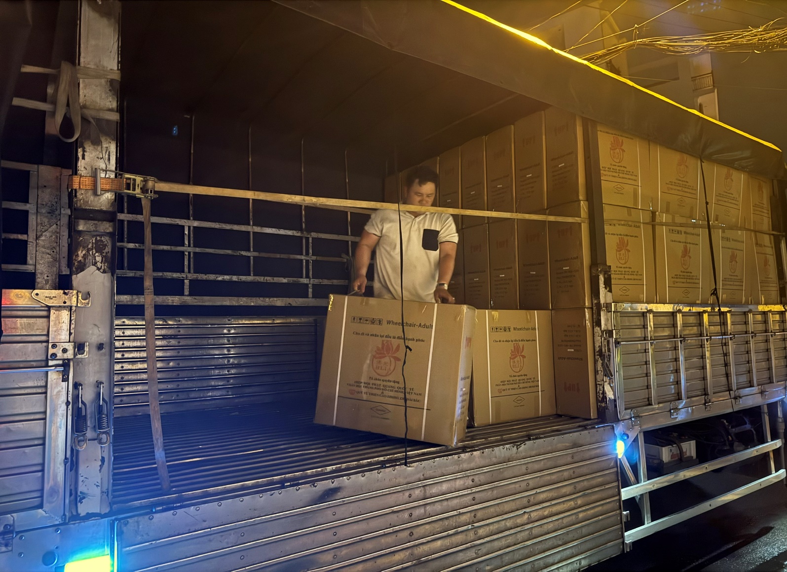Lô xe lăn này khởi hành từ Nam Kinh bằng đường biển, trong quá trình vận chuyển đã gặp nhiều khó khăn do bão và thủ tục nhập khẩu, khiến việc giao hàng bị trì hoãn. May mắn thay, trong hành trình đã nhận được sự trợ giúp kịp thời từ những người quý nhân, cuối cùng mọi trở ngại đều được vượt qua và xe lăn đã đến Việt Nam một cách thuận lợi. Sau khi được sắp xếp chu đáo, tổng cộng 312 chiếc được chuyển đến chùa Tế Độ, và 102 chiếc đến chùa Long Hưng – Hà Nội, sau đó được phối hợp bàn giao cho các đơn vị thụ hưởng. Hành trình này không chỉ thể hiện sức mạnh bền bỉ của lòng từ thiện, mà còn giúp chúng ta thấm thía hơn rằng: “Trong nghịch cảnh, lòng thiện càng trở nên quý giá.”