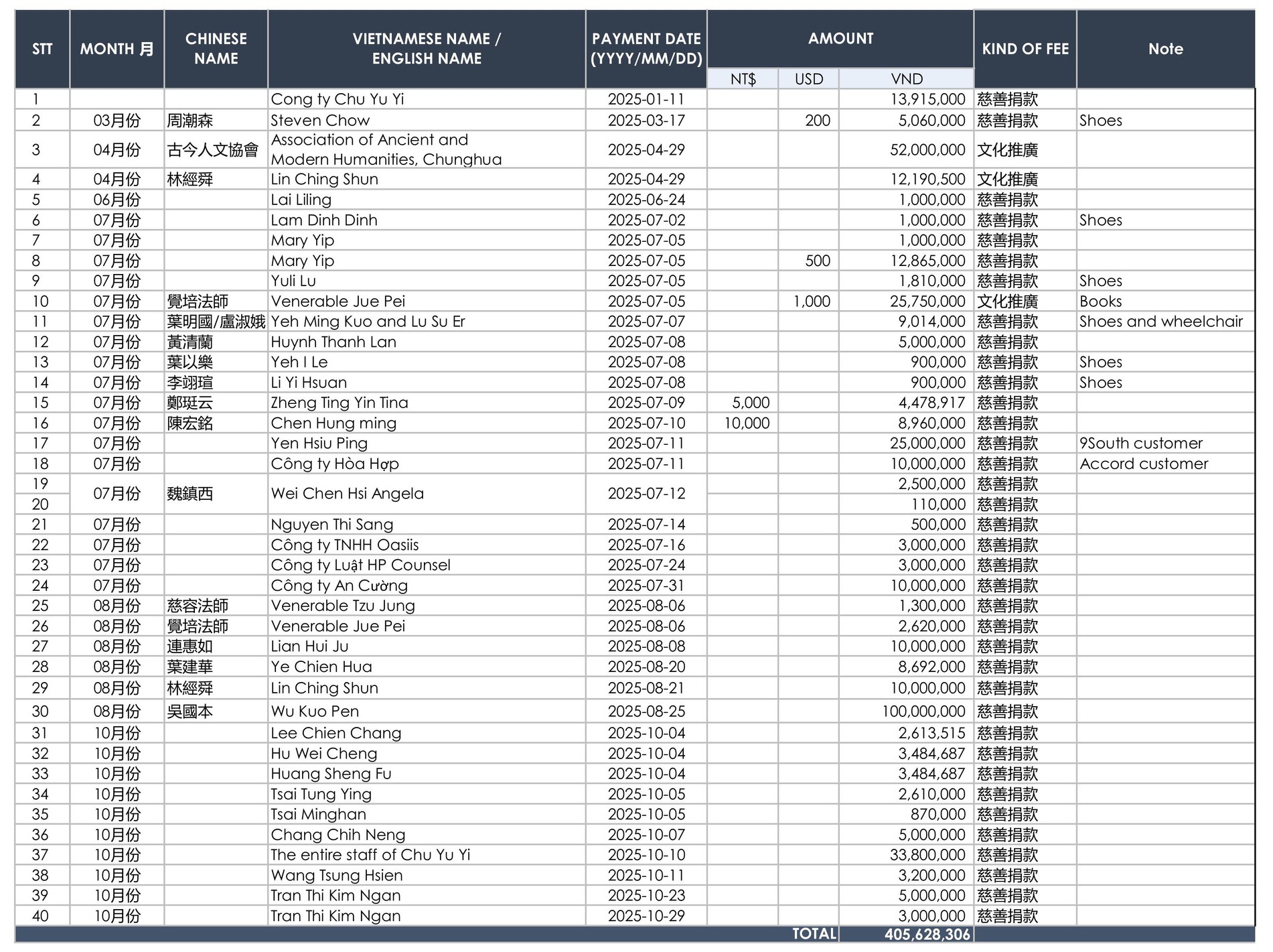 Danh sách mạnh thường quân tài trợ các hoạt động năm 2025